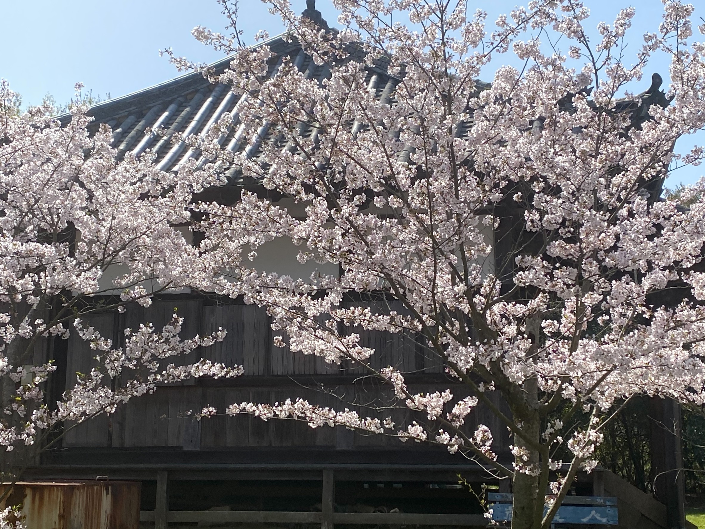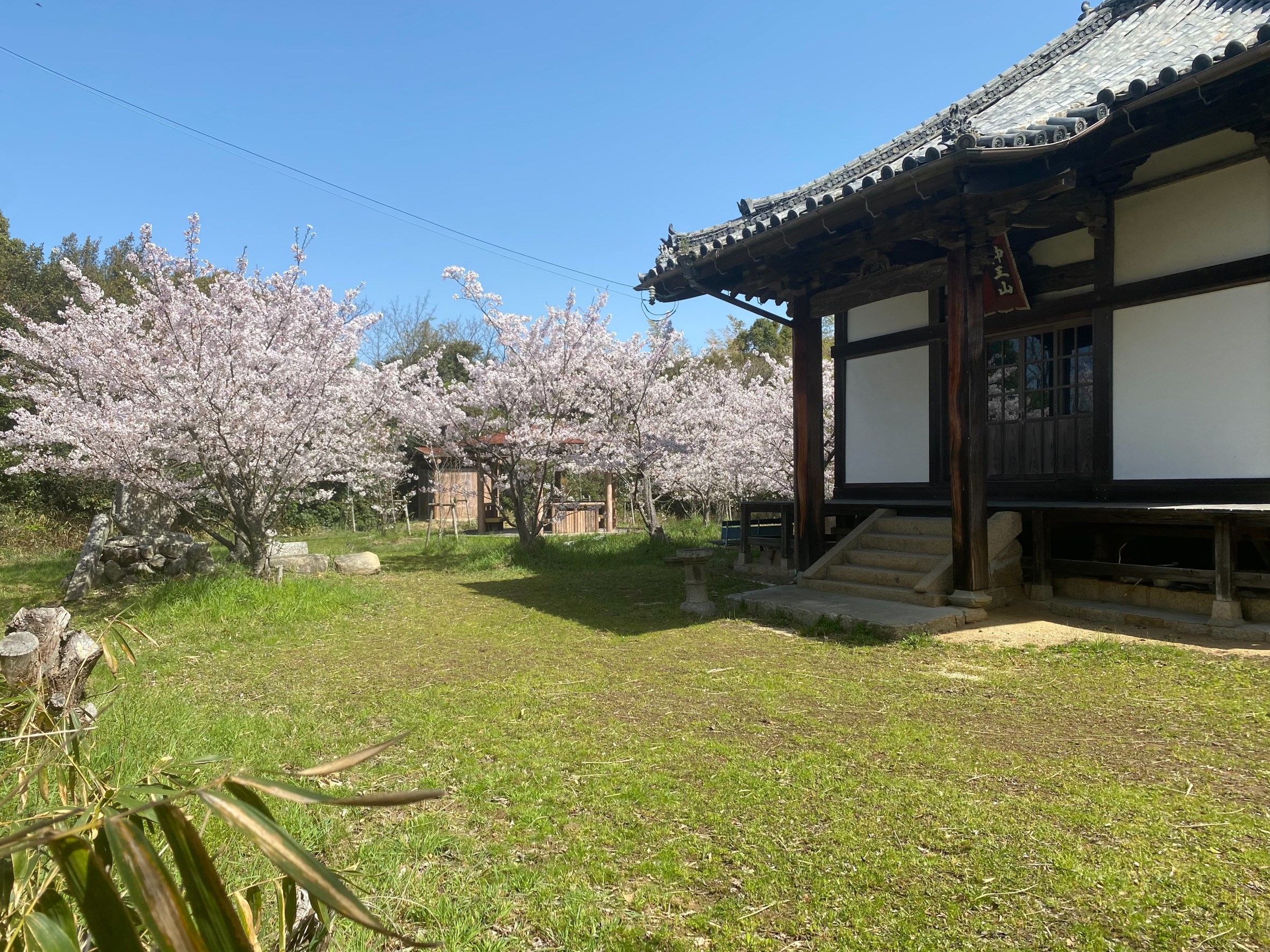 写真はその中山観音堂の満開の桜です。古老の話では、昔は地域の桜の名所だったようで、多くの方々がよく花見に訪れていたようです。近年、桜も数本を残し多く枯れてしまっていたのですが、10年程前より、海福寺潮音会の方々の尽力により、桜やモミジが植栽されています。