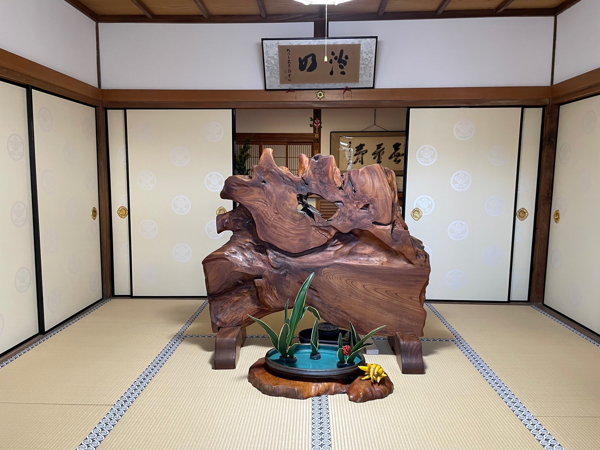 2022年01月15日 庫裡玄関に生けられた万年青と仏柑柑、応接間の椿 万年青(オモト)は、いつも青々と色褪せず、葉もいつまでも美しい緑色をしていることから長寿や健康を司る開運の植物とされています。 仏手柑(ブッシュカン)は、仏さまが合掌した手のような形をしており、お正月などのお祝いごとのときに用いられる柑橘類です。