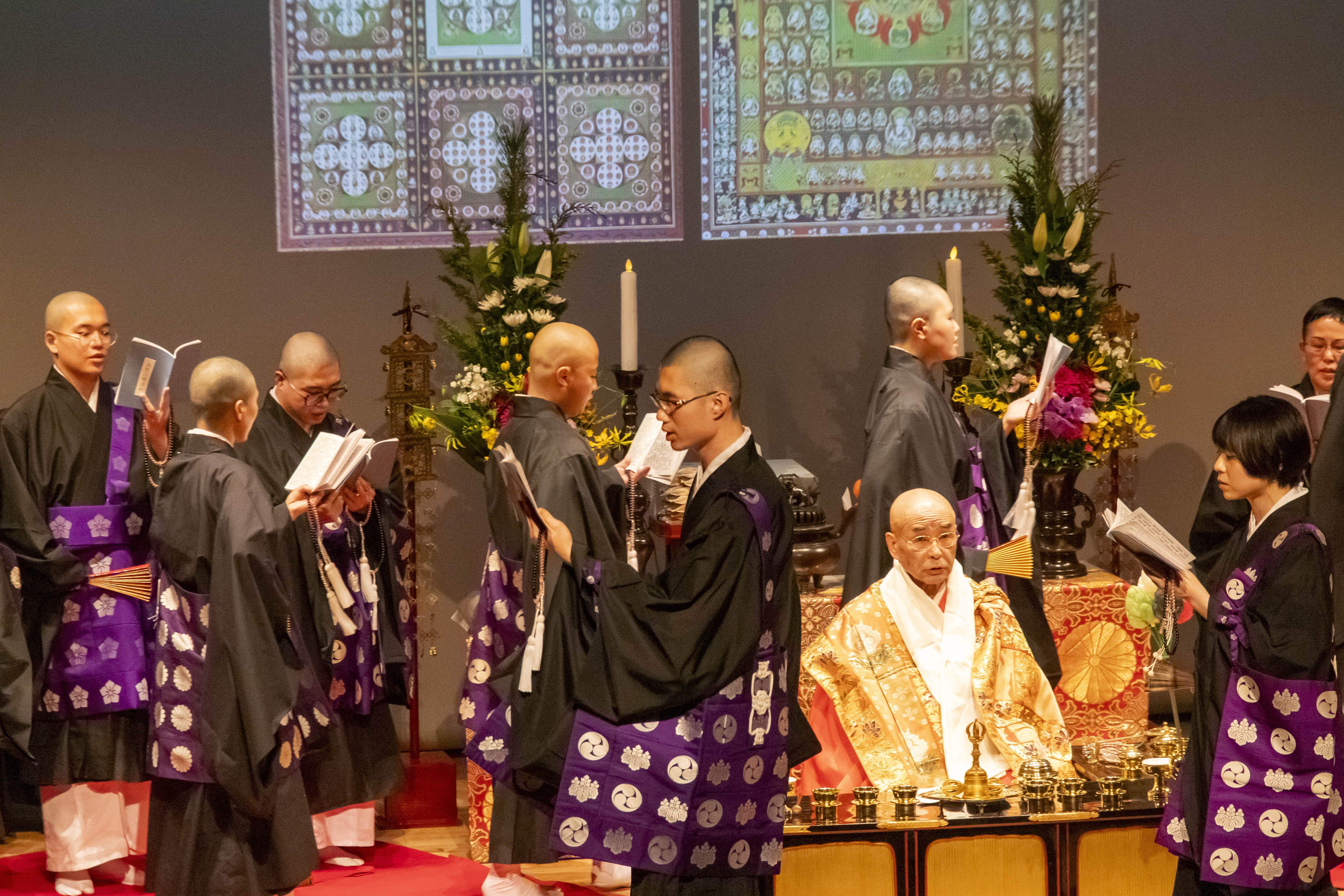 種智院大学の演目は「五日三時法」で、その中の一座のみを執行させていただき ました。 公演では、弘法大師をはじめ聴衆(無相の本尊)へのお供養のため、また世界各地 の多くの戦争犠牲者・震災犠牲者への追福菩提のため、心をこめてお勤めをさせ ていただきました。 本年の第10回公演は令和8年12月18日の予定です。是非ご来場ください。